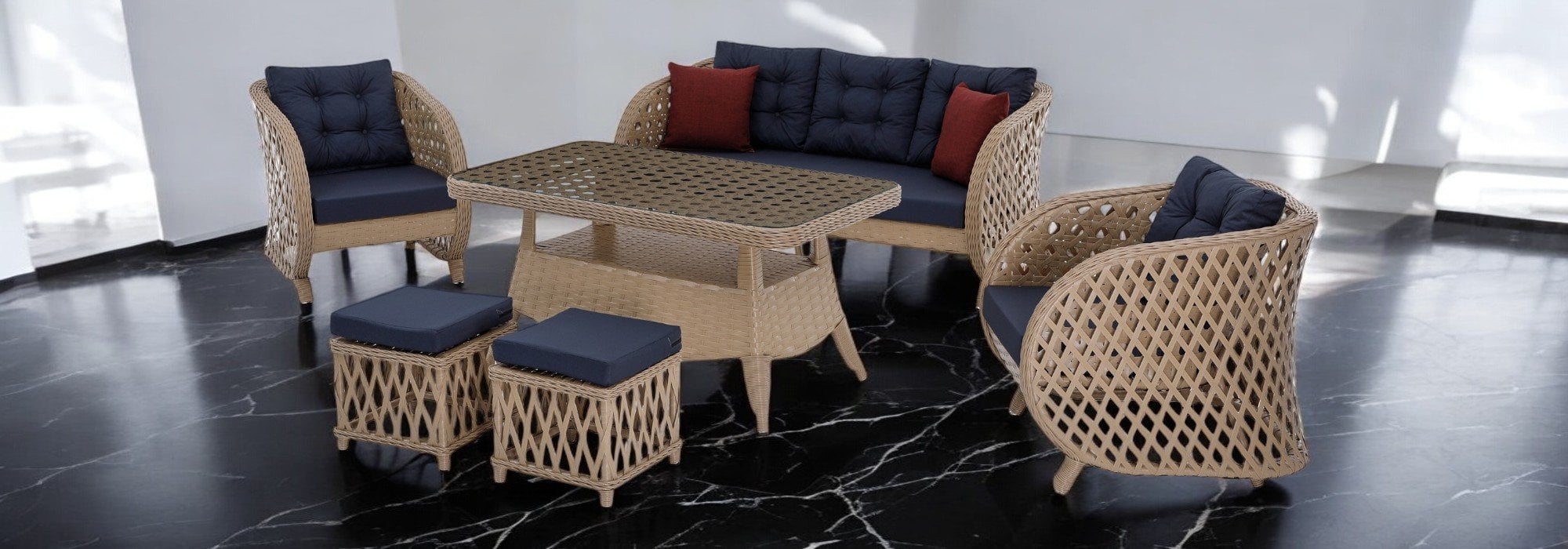 Lifos (İnce Rattan) 3'lü Oturma Grubu